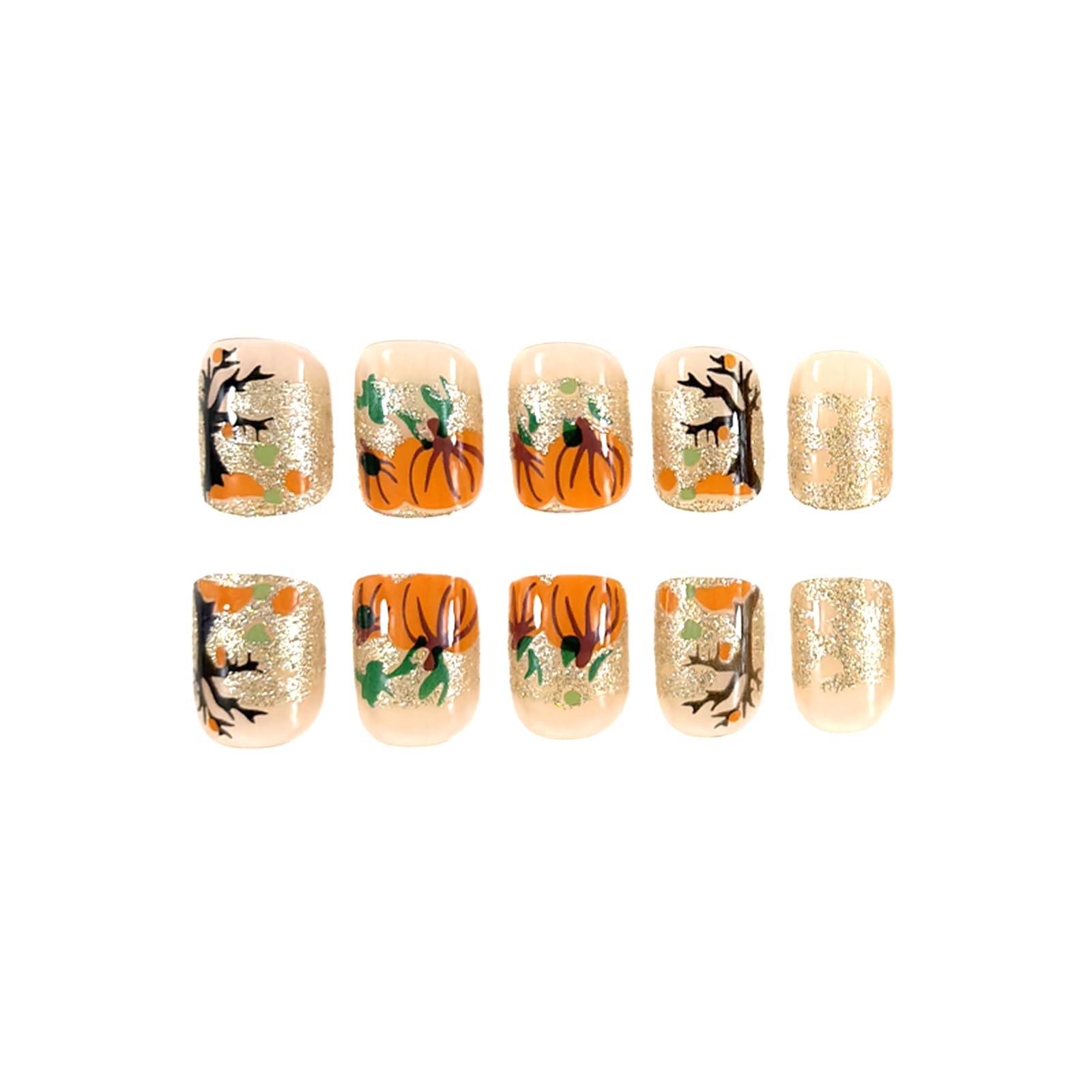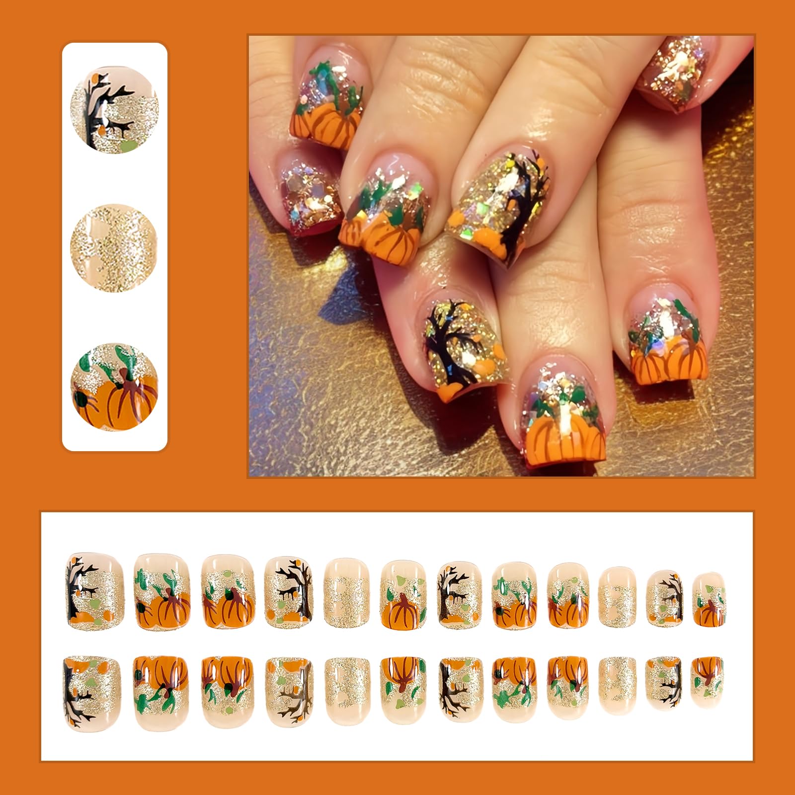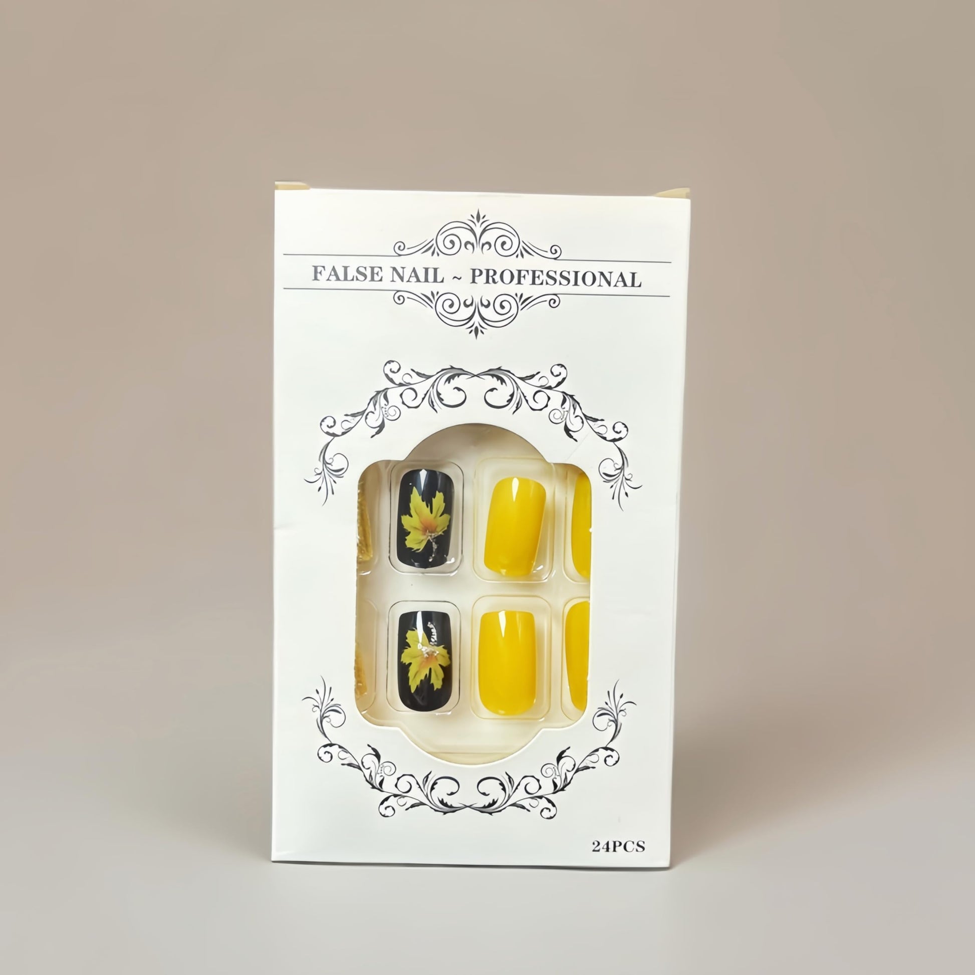 Square Press on Nails Fall Maple Leaf Fake Nails with Nail Glue Exquisite Design Cute False Nails for Women Nail Art