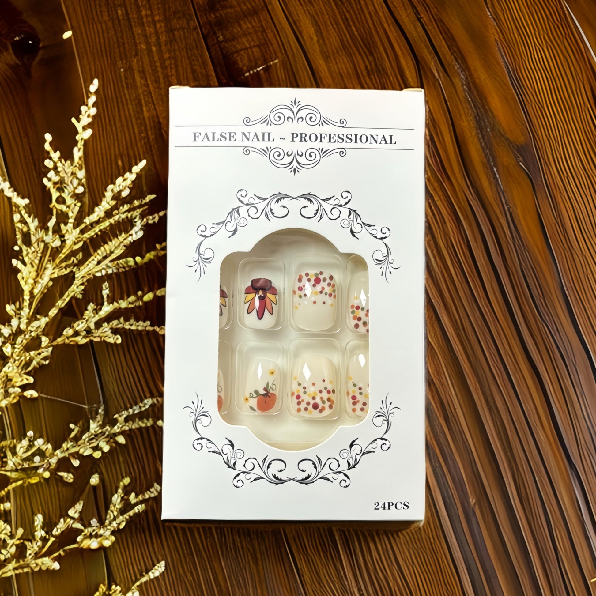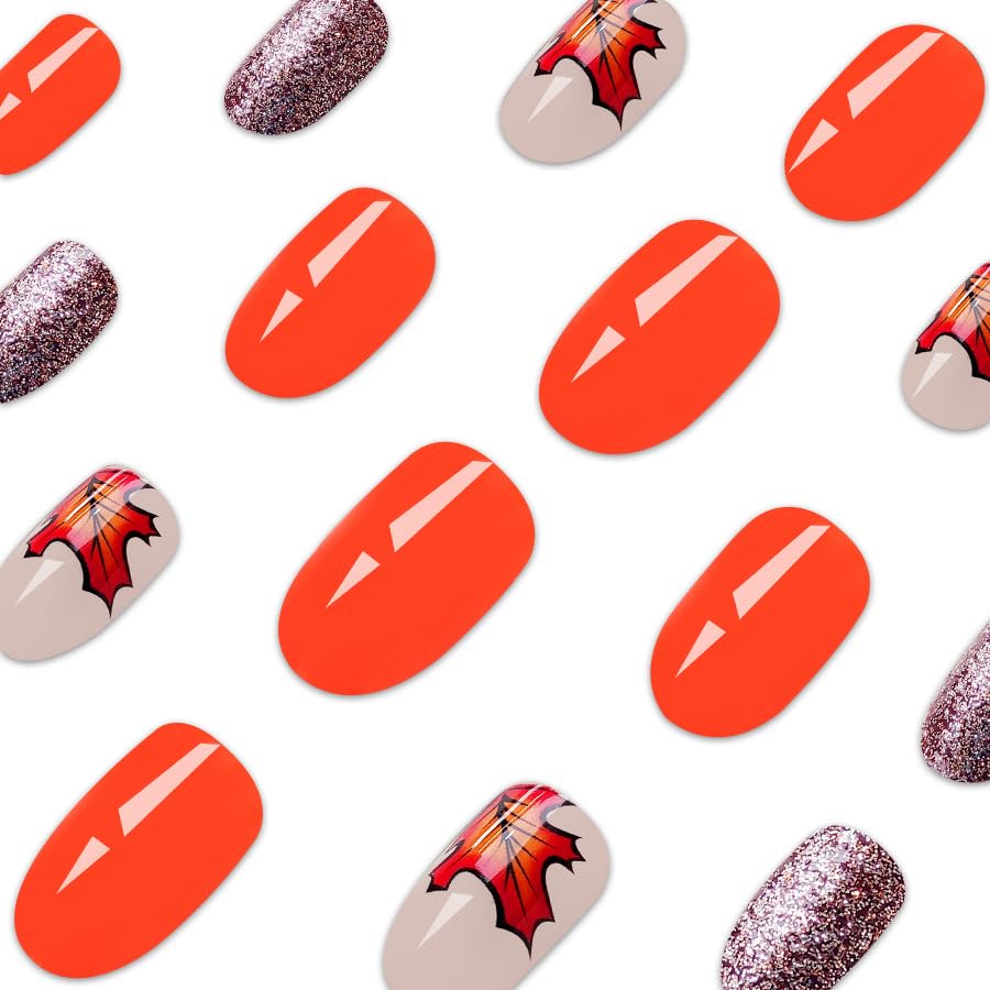 - Package Contains:A box contains 24 fall maple leaf fake nails, a nail file and 24 jelly glues, an alcohol cotton pad,1 wooden stick,the fake nails are divided into 12 different sizes, it is convenient for you to choose the fake nails that suit your nail