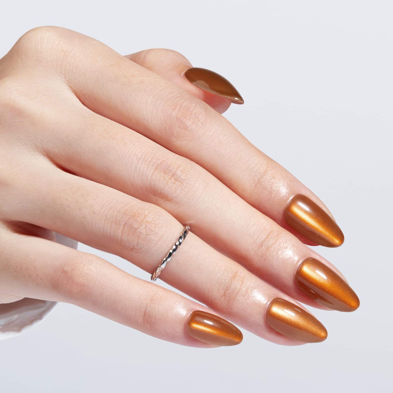 Modelones Brown Press on Nails Almond, Fall Short Fake Nails, Reusable Nail Kit with Nail Glue Adhesive Tabs Mini Nail File, Nails Press Ons 32Pcs 16 Sizes, Women Girl Gift, Amber