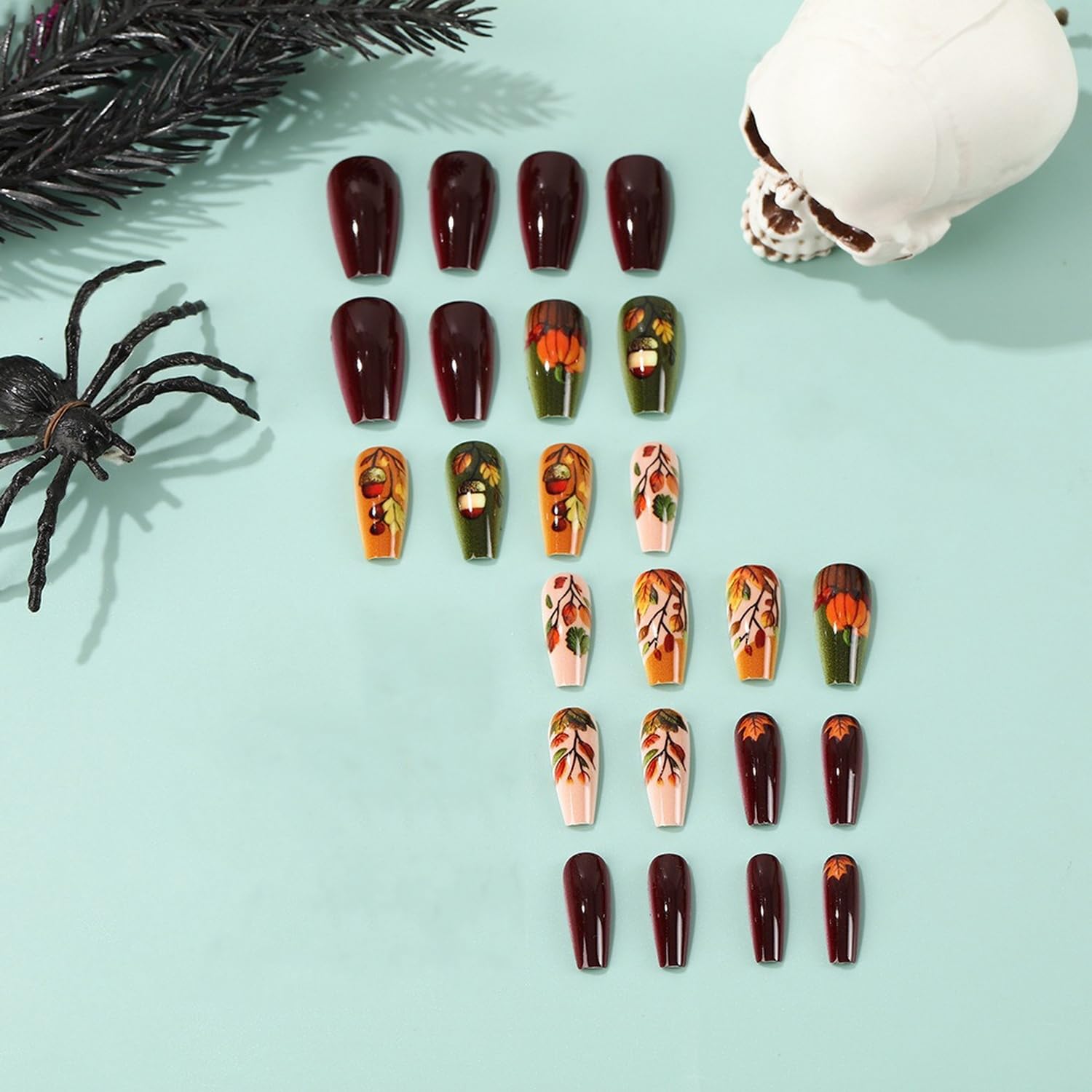 - Exquisite Design: Our fall press on nails feature a stunning wine red leaves design, perfect for adding a touch of elegance to your manicure with a brown French full cover style