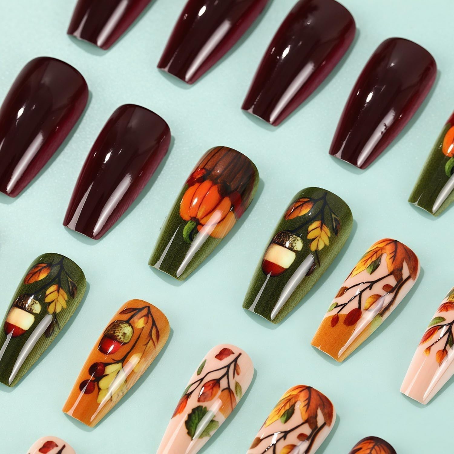- Easy Application: These fall nails are designed for hassle-free application. Simply apply the included adhesive tabs for an instant manicure that you can do at home, saving both time
